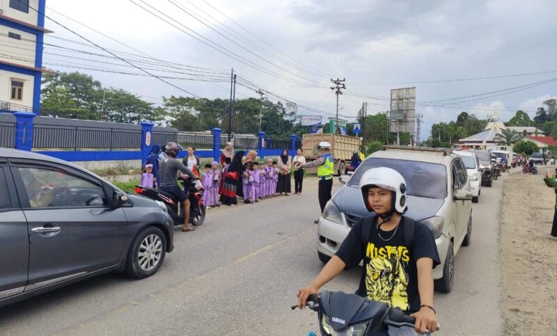 Untuk memastikan kegiatan berlangsung tertib dan tidak mengganggu kelancaran arus kendaraan, personel Polres Sekadau yang dipimpin Pawas melakukan pengamanan sekaligus pengaturan lalu lintas di sekitar lokasi.