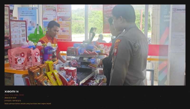 Polsek Sengah Temila ~Polres Landak ~ Polda Kalbar ~ Menjelang bulan suci Ramadhan yang tinggal beberapa hari lagi, jajaran Kepolisian terus meningkatkan kegiatan patroli guna menjaga situasi kamtibmas tetap aman dan kondusif. Seperti yang terlihat pada Sabtu (14/2/2026), personel Polsek Sengah Temila melaksanakan patroli siang hari dengan sasaran toko ritel modern Alfamart di wilayah hukum Polsek Sengah Temila.