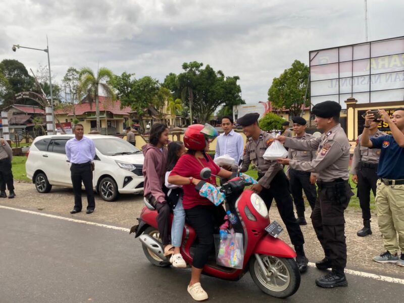 Polres Melawi Polda Kalbar – Wujud rasa syukur atas Hari Ulang Tahun Korp Sabhara Polri Ke-84 tahun 2026 tanggal 11 maret 2026, Polres Melawi melaksanakan pembagian takjil dipimpin langsung Kasat Sabhara AKP Nono Partoyuwono bersama personelnya di depan mapolres Melawi, Rabu (11/3/26)
