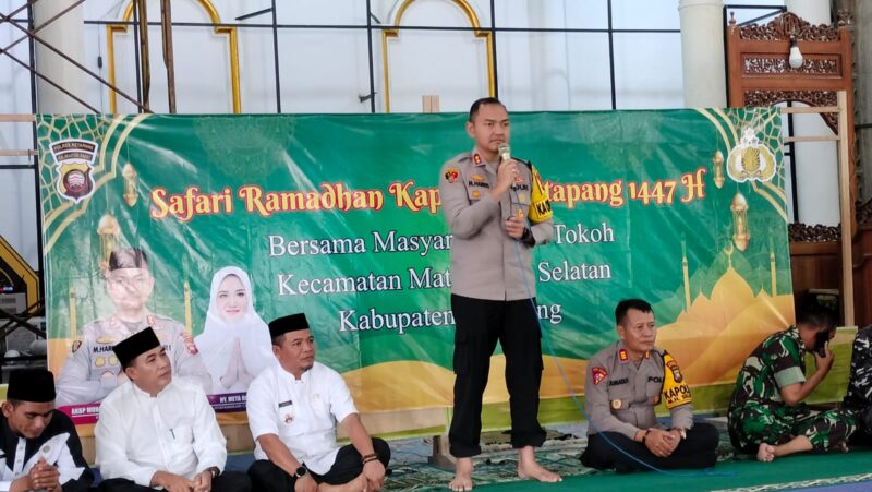 Dalam rangka mengisi Bulan Suci Ramadhan 1447 H, Kapolres Ketapang AKBP Muhammad Harris S.H., S.I.K., M.I.K., CPHR melaksanakan kegiatan Safari Ramadhan dengan melakukan tatap muka bersama masyarakat dan tokoh agama di Masjid Sirajul Mukminin, Desa Pesaguan Kanan, Kecamatan Matan Hilir Selatan, Kabupaten Ketapang (27/02/2026).