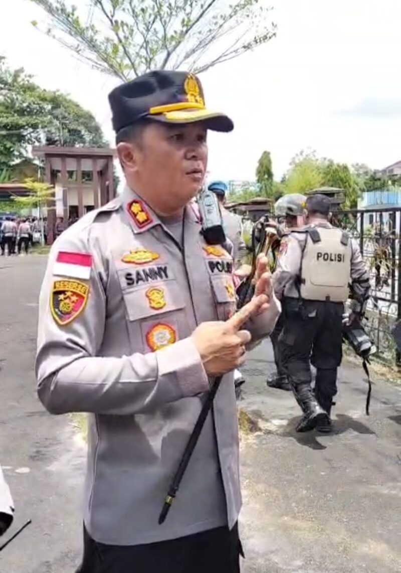 Kapolres Sintang AKBP Sany memimpin langsung koordinasi pengamanan bersama jajaran Polres terkait, personel Brimob, serta unsur TNI.