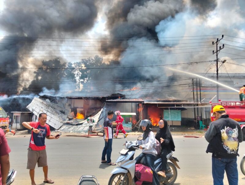 Peristiwa kebakaran hebat terjadi di kawasan pertokoan dan rumah makan yang berada tepat di depan Polsek Nanga Pinoh, Kabupaten Melawi, pada hari Selasa(24/3/26).