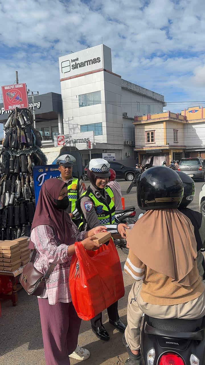 Selain membagikan takjil, petugas juga mengimbau para pengendara untuk tetap tertib berlalu lintas, menggunakan helm bagi pengendara sepeda motor, serta selalu mematuhi rambu-rambu lalu lintas demi keselamatan bersama.