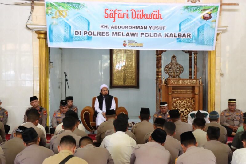 *Polres Melawi Polda Kalbar* – Kegiatan Safari Dakwah yang menghadirkan KH. Abdurrahman Yusuf berlangsung khidmat di Masjid Shiratul Jannah Polres Melawi, Minggu (1/3/2026). Kegiatan tersebut menjadi momentum pembinaan rohani bagi personel kepolisian sekaligus mempererat sinergitas antara ulama dan aparat penegak hukum.