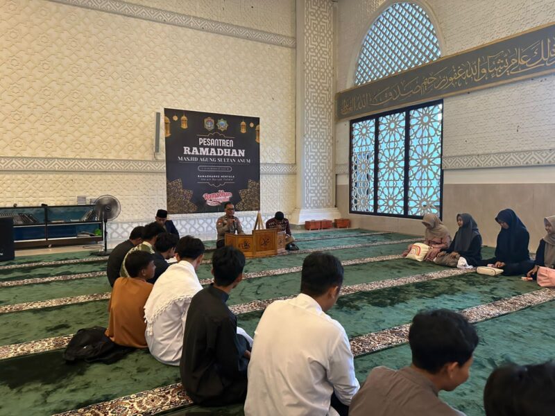 Satuan Pembinaan Masyarakat (Satbinmas) Polres Sekadau menggelar kegiatan pembinaan dan penyuluhan (binluh) dalam program Ramadan Memang Banyak Pahala (MENYALA) di Pesantren Ramadan Masjid Agung Sultan Anum, Kecamatan Sekadau Hilir, Kabupaten Sekadau, Rabu (4/3/2026).