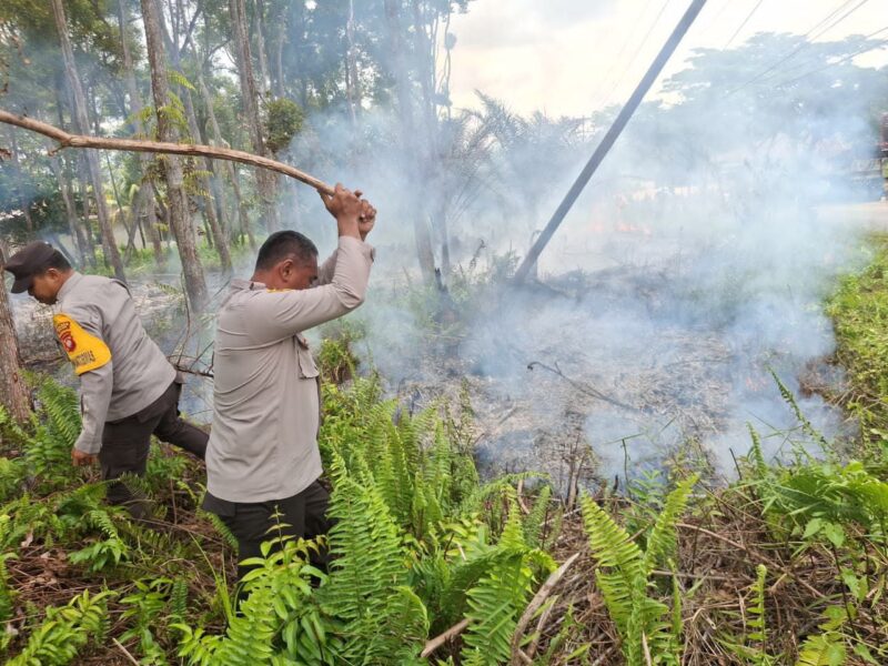 Polres Melawi Polda Kalbar – Respon Cepat dilakukan Satuan Lalu Lintas dan Polsek Nanga Pinoh mendatangi dan memadamkan api yang membakar semak belukar di areal Yayasan Emaus Jalan Kota Baru Km.4 Nanga Pinoh, Rabu (25/3/26).