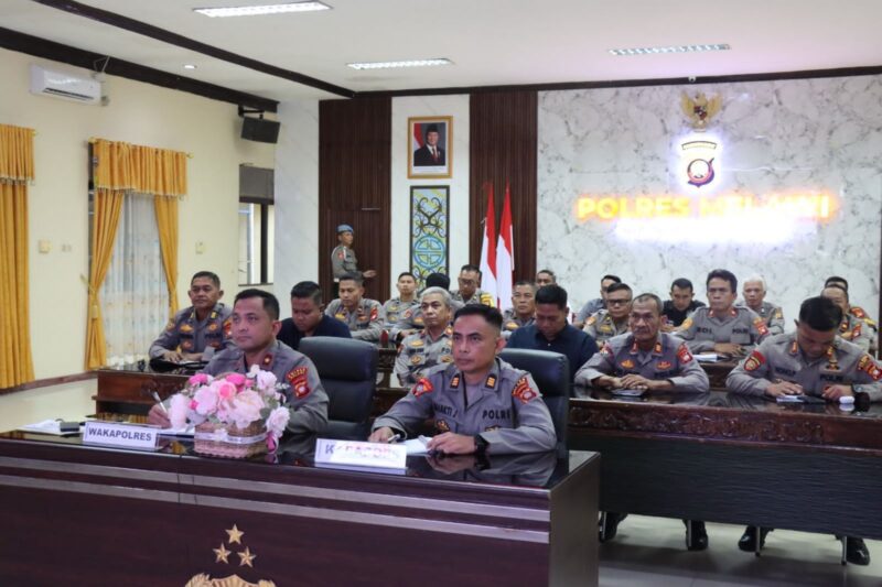 Kegiatan tersebut dilaksanakan secara virtual dan terhubung langsung dengan Polda Kalbar di Graha Khatulistiwa. Rapat dipimpin langsung oleh Kapolda Kalbar, Irjen Pol. Dr. Pipit Rismanto, S.I.K., M.H. serta diikuti seluruh jajaran Polres se-Kalimantan Barat.